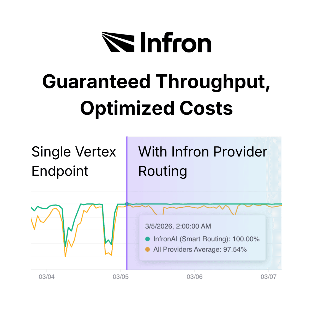 How it works | Call Infron's API endpoint directly in the standard way (e.g. | Infron introduces Google's Provisioned Throughput Provider. This is an optional configuration (disabled by default). When a user explicitly specifies "high-availability routing" via parameter, Infron schedules the request into Google's high-priority resource pool. |